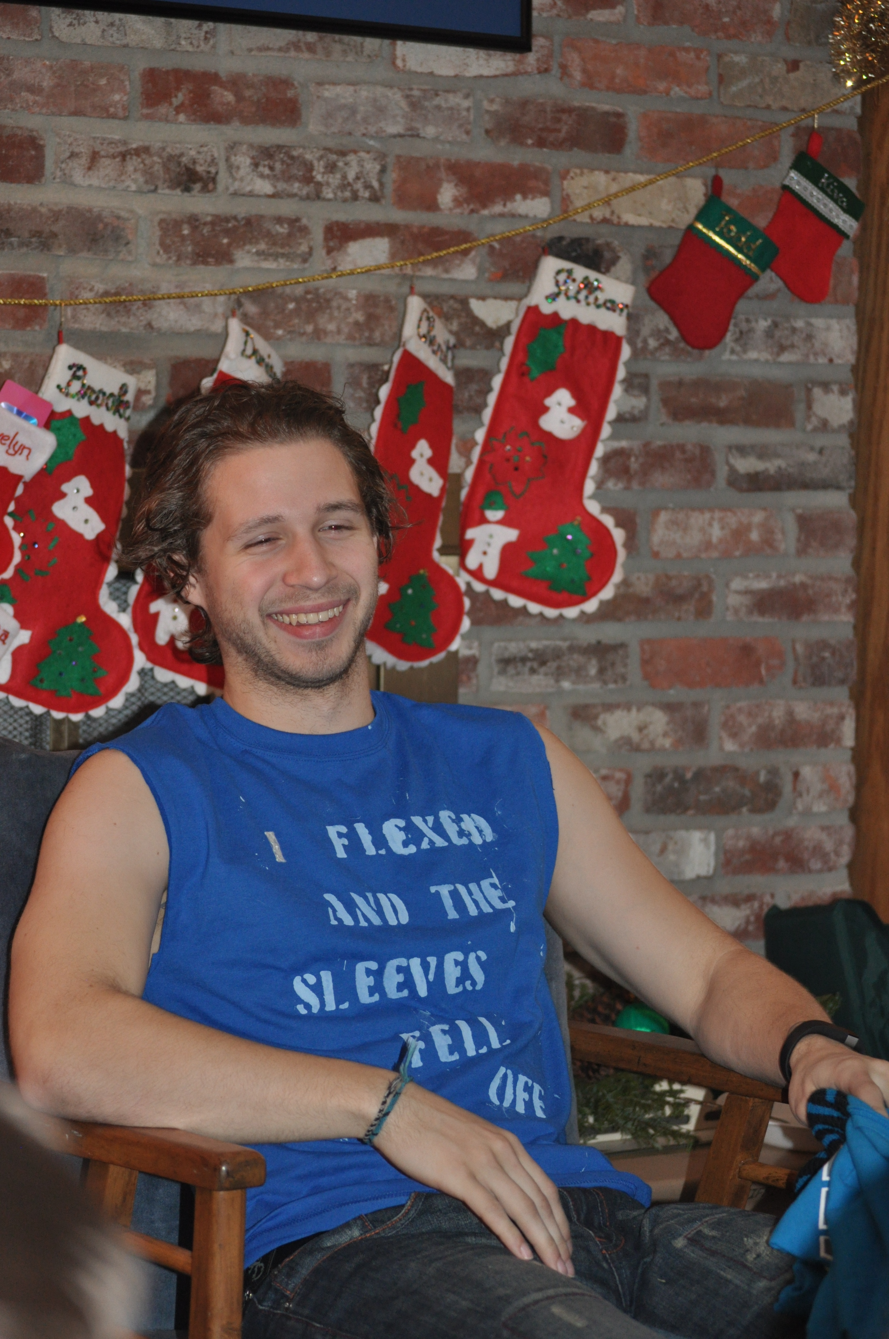 To Darien, the fitness buff getting a degree in kinesiology so he can be a personal trainer, Brooke gave the gym of his dreams, and suggested services such as a wind tunnel for sky-diving training, indoor rapids racing, a 5 story climbing wall, shark tank swimming lessons, rabid wolverine wrestling, Temple of Doom Endurance obstacle course, and King David’s Mighty Men certification. Bonus gift: 5 year exclusive contract with Brooke’s imaginary clothing company to produce all his “gym swag needs.” Along with this certificate came the T-shirt Brooke made, as seen in the photo.